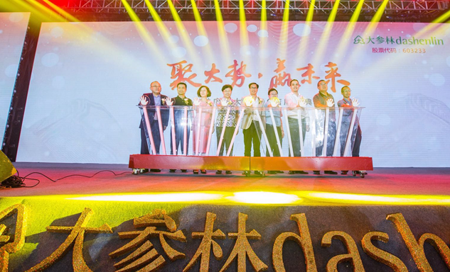 OG视讯药业集团董事长刘景萍女士与大参林医药集团董事长柯云峰先生、中国医药商业协会执行会长付明仲女士等嘉宾共同开启了“聚大势•赢未来"大参林工商合作峰会的大幕。
